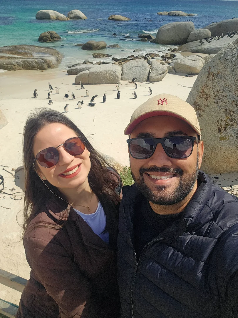 Depois, seguimos para a fofíssima Boulders Beach, lar de uma colônia de pinguins africanos! 🐧