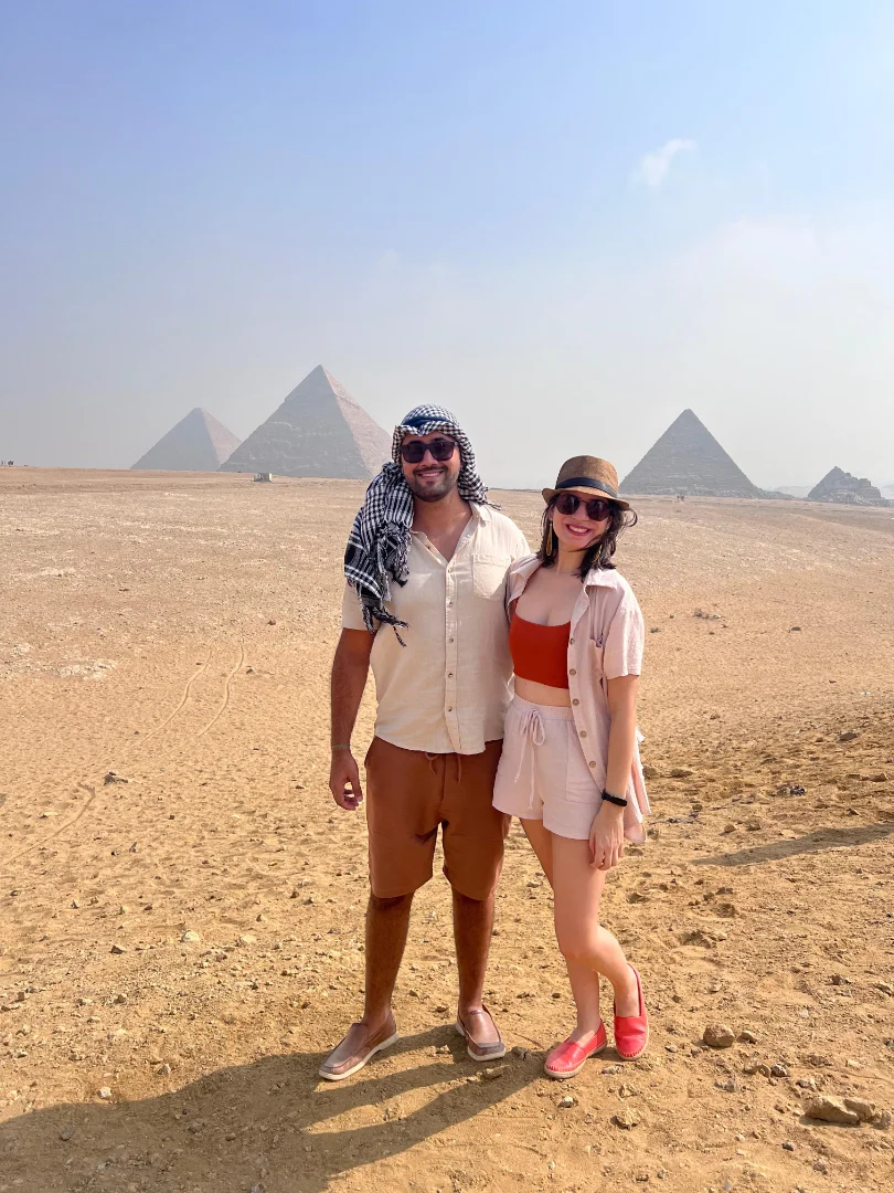 A maioria das opções envolve passar por um país Europeu. Quando fomos, pegamos um voo pela ITA Airways saindo de Guarulhos para o Cairo, com conexão em Roma. Mas vale ressaltar que há várias outras opções de companhias e conexões, como por exemplo a Emirates que para em Dubai.